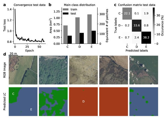- D4 (unenclosed lowland areas)—the distinction between D4 and E classes is based on whether the land is “enclosed for stock control purposes” [29]. This cannot be done based on 64 m × 64 m image patches as used for input data by the CNNs. D4 was therefore excluded.