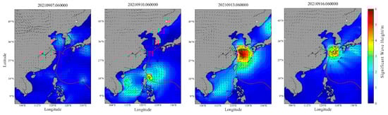 The typhoon track data come from the CMA Tropical Cyclone Data Centre (https://tcdata.typhoon.org.cn/, accessed on 1 July 2023). The fitted buoy data are selected from the National Data Buoy Centre (NDBC) (https://www.ndbc.noaa.gov/, accessed on 15 July 2023). The comparison buoy data come from the Korea Meteorological Administration (KMA) (https://data.kma.go.kr/data/sea/, accessed on 15 July 2023). The SWAN model offshore inspection data are taken from the National Marine Data Centre (NMDC) (https://mds.nmdis.org.cn/, accessed on 1 July 2023), and the offshore detection data come from the National Centres for Environmental Information (NCEI) (https://www.ncei.noaa.gov/data/oceans/jason3/gdr_f/gdr_ssha/, accessed on 15 July 2023). The wind field data are provided by the European Centre for Medium-Range Weather Forecasts (ECMWF) (https://cds.climate.copernicus.eu/cdsapp#!/home, accessed on 1 July 2023). Coastline data were taken from the Global Self-consistent, Hierarchical, High-resolution Geography Database (GSHHG) (https://www.soest.hawaii.edu/pwessel/gshhg/, accessed on 1 July 2023).