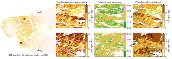 - Zhou, Y.; Chartin, C.; Oost, K.V.; van Wesemael, B. High-resolution soil organic carbon mapping at the field scale in Southern Belgium (Wallonia). Geoderma 2022, 422, 115929. [Google Scholar] [CrossRef]