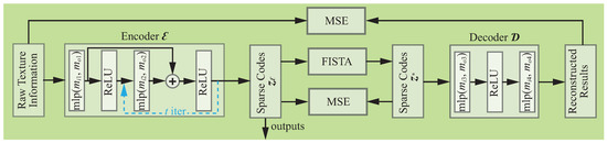 The architecture of the DSC module is shown in Figure 2. Given texture information and a fixed decoder , the FISTA algorithm is applied to obtain a sparse code which can best reconstruct the texture information using elements. The encoder is trained to predict the sparse code , which is the output of FISTA. On the other hand, the decoder is trained by minimizing the mean square error (MSE) between the reconstructed texture information and the raw texture information by using the sparse code . The details are described as follows.