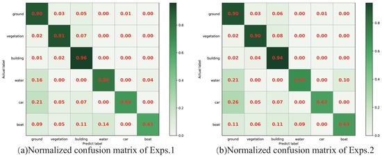 Normalized confusion matrix of Exps.1 and Exps.2.