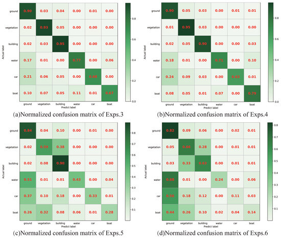 Normalized confusion matrix of Exps.3∼Exps.6.