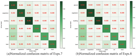 Normalized confusion matrix of Exps.7 and Exps.8.