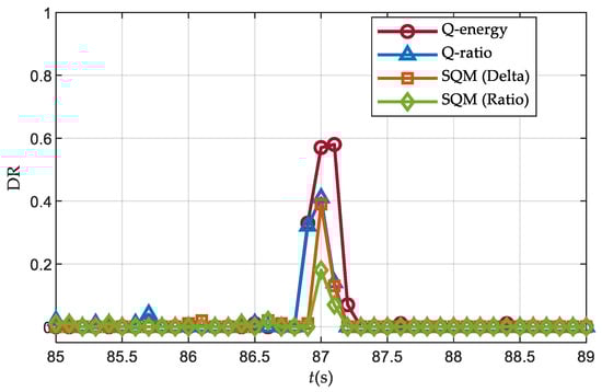 In comparison to Figure 8, both the Q energy detector and the Delta detector exhibit minimal changes, while the performance of the Q ratio detector declines in the dynamic situation. This confirms the robustness of the Q energy detector.