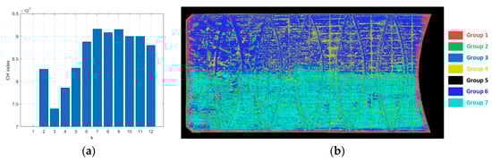 The filtering process relies on the clustering capability of k-means to effectively group the features of interest. In this study, we employed the CH criterion for clustering validation to quantitatively assess the quality of the clustering results. The advantage of the CH criterion lies in its capability to account for both the separation between clusters and the cohesion within the clusters, thereby providing an overall assessment of clustering quality, where a higher CH index indicates a more well-defined and compact clustering outcome. As the CH criterion considers variance ratios, it is more robust in scenarios where clusters exhibit complex geometry compared to other alternatives such as the elbow method and silhouette plot. Upon applying this criterion, the