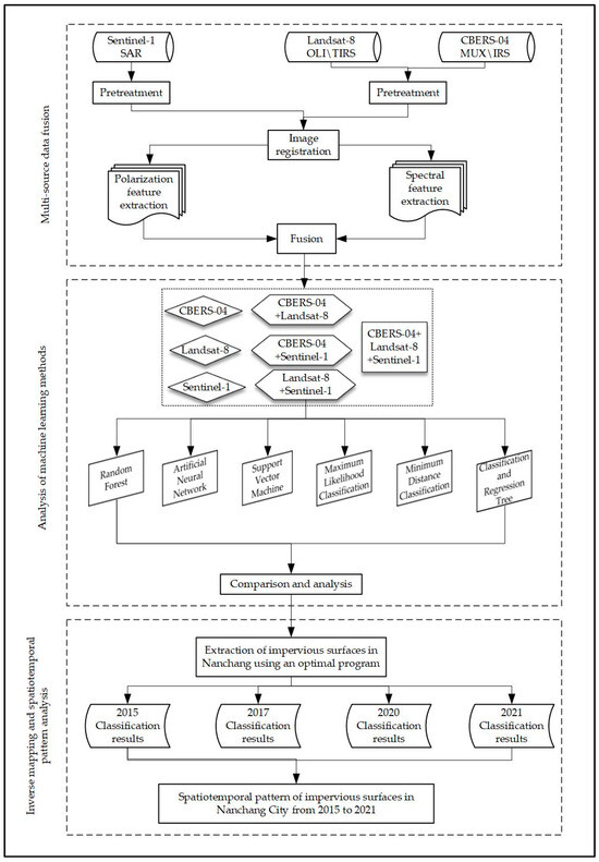 Wu, Y.; Pan, J. Detecting Changes in Impervious Surfaces Using Multi-Sensor Satellite Imagery and Machine Learning Methodology in a Metropolitan Area. Remote Sens. 2023, 15, 5387. https://doi.org/10.3390/rs15225387