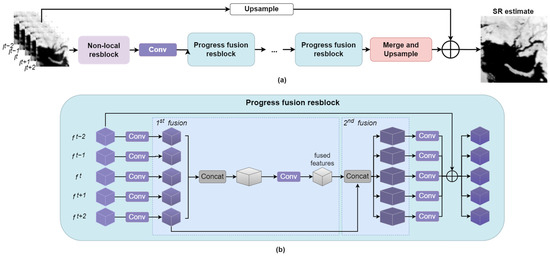 - Yi, P.; Wang, Z.; Jiang, K.; Jiang, J.; Ma, J. Progressive Fusion Video Super-Resolution Network via Exploiting Non-Local Spatio-Temporal Correlations. In Proceedings of the 2019 IEEE/CVF International Conference on Computer Vision (ICCV), Seoul, Republic of Korea, 27 October–2 November 2019; IEEE: Seoul, Republic of Korea, 2019; pp. 3106–3115. [Google Scholar]