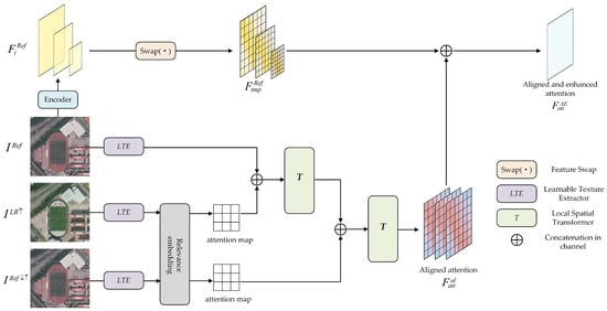 Different from previous patch-match-based methods where patches are swapped from non-learning process [13], the alignment strategy proposed in this study is an end-to-end ViT-based learnable process, namely of aligned and enhanced attention, as shown in Figure 4. For improved model generalization, Ref and LR, in this section, are selected from the external dataset which differ in spectral characteristics and spatial content despite being aimed for the same ROI. It corresponds to a normal RefSR verification process.