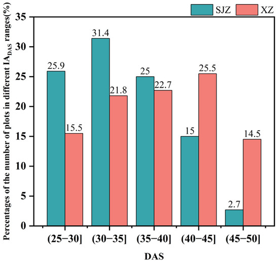 The percentages of the number of plots in different IADAS ranges to the total number of plots.