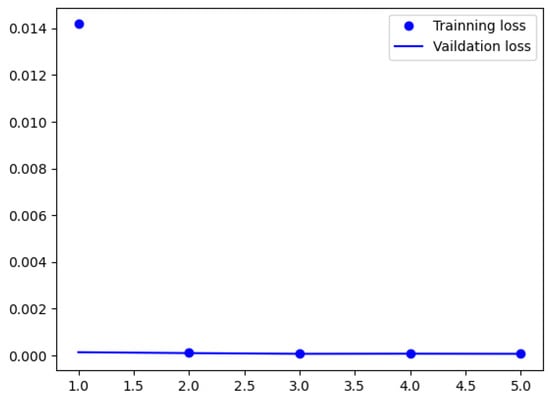 Figure 5 and Figure 6 display the mean squared error (MSE) and mean absolute error (MAE) across epochs during the training process. Our model’s training process was stopped early, after only 5 epochs. Recent studies have demonstrated that adding the Self-Attention mechanism to the model can significantly improve its convergence speed [48,49,50,51,52]. During this short training period, the training loss rapidly decreased to 9.6016 × and then remained stable with minor fluctuations. The validation loss followed a similar pattern, maintaining a nearly constant value around 9.6016 ×. The changes in training MAE appeared to mirror the training loss. Notably, during the third and fourth epochs, the validation MAE experienced slight fluctuations but quickly stabilized. Our model has a total of 8,306,946 parameters, with 8,306,178 of them being trainable and 768 being non-trainable. On the test set, our model achieved a loss of 8.6046 × and a MAE of 0.005. These results indicate that the model fits the training data well, and its performance on both the validation and test sets suggests that it has not overfitted.