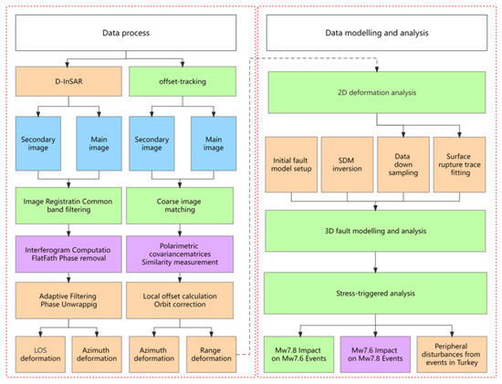 A workflow was used to study the 2023 Türkiye-Syria earthquake sequence. LOS deformation, line-of-sight deformation.