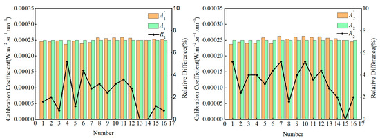 Based on the ratio between the cross-calibration coefficient and the original scaling coefficient , the relative difference of the cross-calibration coefficient is obtained, and is calculated using Formula (11).