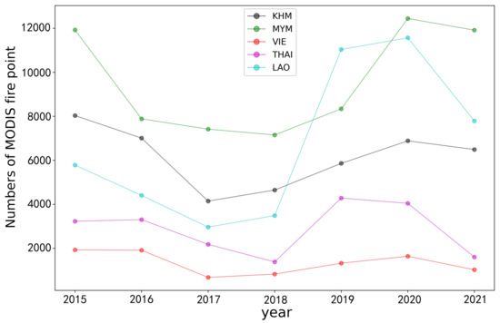 Statistics on the number of fire points in Peninsular Southeast Asian countries, 2015–2021.