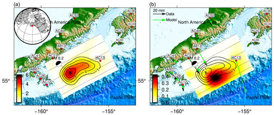 - Li, S.; Freymueller, J.T. Spatial variation of slip behavior beneath the Alaska Peninsula along Alaska-Aleutian subduction zone. Geophys. Res. Lett. 2018, 45, 3453–3460. [Google Scholar] [CrossRef]