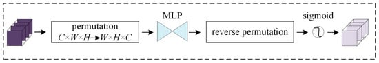 PyConv [] can not only expand the receptive field of the input to capture sufficient UGS contextual information by convolving 3 × 3, 5 × 5, 7 × 7, etc., but also process inputs of incremental kernel sizes in parallel by using a pyramid structure. This helps the model understand and represent UGS in images of different scales, and to obtain detailed multi-scale information on UGS objects. Global attention mechanism (GAM) [] preserves channel (Figure 4) and spatial (Figure 5) aspects of information to enhance the importance of cross-dimensional interactions, improving the perception performance of the deep neural network on UGS objects by reducing object information dispersion. Inspired by PyConv and GAM, the MSPA module is built to further enhance object information extraction. As depicted in Figure 1, the MSPA module comes into play after the initial feature extraction phase using ResNet50. Its primary objective is to extract multi-scale contextual information and depth channel-specific information. The MSPA module’s capabilities are twofold. First, it leverages contextual information to address objects with similar shapes, such as low vegetation and tree, facilitating their classification. Moreover, it excels in processing and segmenting the intricate edge details between objects. This contextual understanding enhances the model’s ability to distinguish and categorize objects effectively. Secondly, the MSPA module extracts multi-scale spatial and channel information concurrently. This parallel extraction approach ensures that the model pays significant attention to both object category information and object location details. This focus on multi-scale aspects allows the model to emphasize essential information within the image, leading to a substantial improvement in segmentation accuracy. In general, the MSPA module, inspired by the principles of PyConv and the Global Attention Mechanism, plays a pivotal role in enhancing object information extraction. It effectively captures multi-scale context and depth channel-specific information, ultimately bolstering the segmentation quality and precision of the model.