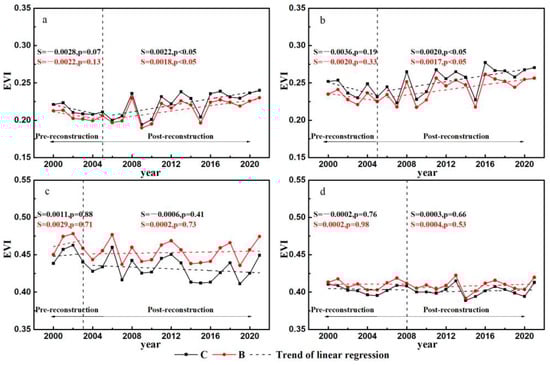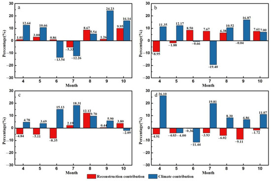 3.2. Impacts of Climate Change and Reconstruction on Vegetation Activity