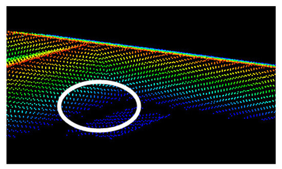 (1) For each neighbor point set , if there are two or more outline end points with the same planar coordinates and different height values, the abrupt height change in Section 3.2.2 Figure 7 should be considered. Then, the corresponding outline should be completed. Firstly, add the outline end points with similar height values into . Label all points in and project them onto the corresponding outline and obtain the new end points. If the planar distance between the two end points belonging to two outlines is shorter than the sphere radius, the two outlines should be intersected to acquire the planar coordinates of the intersection point, while its height value is obtained using the inverse distance weighted average method for the five nearest neighbor points.