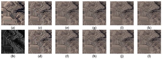 According to the stage of data integration, the fusion technology can be divided into three categories: pixel-level, feature-level, and decision-level [2]. Compared with feature-level and decision-level methods, pixel-level fusion methods involve higher computational complexity. Pixel-level fusion methods, despite their higher computational complexity compared to feature-level and decision-level approaches, are widely employed in remote sensing image fusion due to their superior accuracy. These methods have the properties of effective retention of original data, limited information loss, and abundant and accurate image information [3]. As more and more algorithms and their improved versions have been used to fuse optical and SAR images, researchers have compared the performance of these methods for improving ground object interpretation. For instance, Battsengel et al. compared the performance of intensity–hue–saturation (IHS) transform, Brovey transformation, and principal components analysis (PCA) in urban feature enhancement [4]. The analysis revealed that the images transformed through IHS have better characteristics in spectral and spatial separation of different urban levels. However, in a comparative experiment conducted by Sanli et al., IHS showed the worst results [5].
