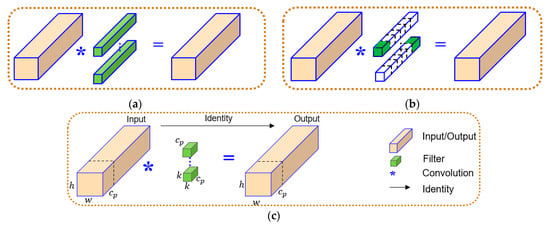 Diagram of different convolutions. (a) Convolution; (b) depthwise/group convolution; and (c) partial convolution (PConv).