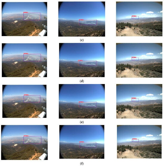 In recent years, the domain of deep learning has witnessed notable advancements owing to progress in hardware capabilities, the capacity to handle extensive datasets, and substantial enhancements in network architectures and training methodologies. Deep learning-based smoke detection algorithms can be classified into two-stage methods and one-stage methods. Two-stage methods include well-known representatives, such as R-CNN [] and Faster R-CNN []. On the other hand, one-stage methods are exemplified by algorithms like SSD [] and the YOLO series [,,,]. The development of these deep learning technologies has provided a solid foundation and technical support for UAV-based forest fire smoke detection.