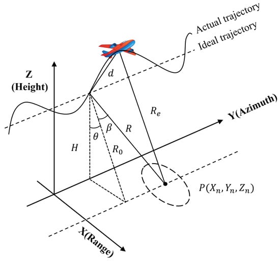 Synthetic Aperture Radar (SAR) has been widely used in military reconnaissance, terrain mapping, environmental monitoring, and other fields [1,2] because of its all-weather ability. In the Stripmap SAR imaging algorithm, it is considered that the radar platform moves uniformly in a straight line, but in reality, due to many factors such as airflow disturbance and piloting error, the track will be an irregular curve.