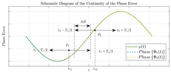 According to the continuity of the phase error, and should be highly coincident. The interrelationship among , , and is shown in Figure 6.