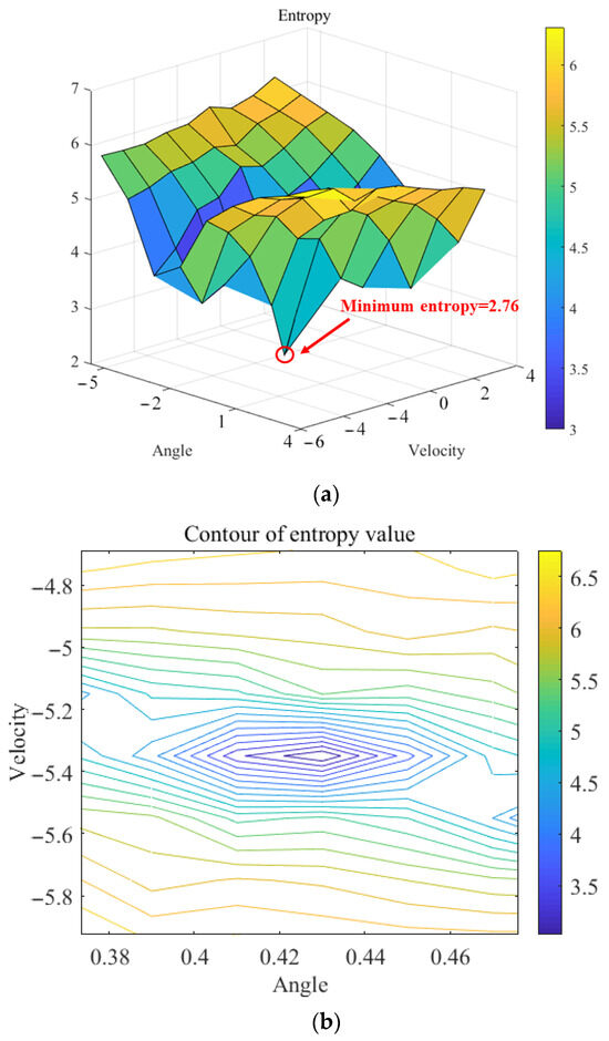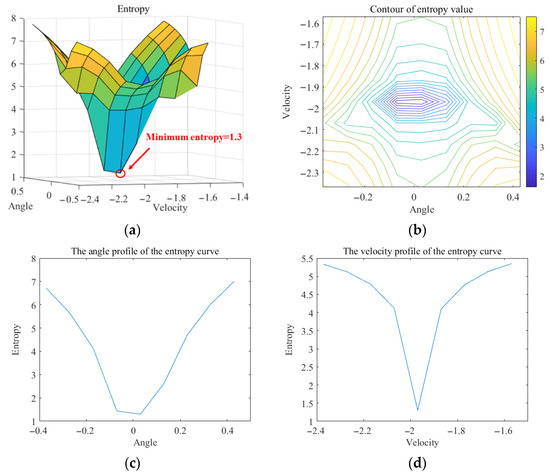 The entropy value curve of A4 by 2D enlightend search is shown in Figure 19. And the minimum entropy finally converges to = −1.97 m/s, = 0.078°.