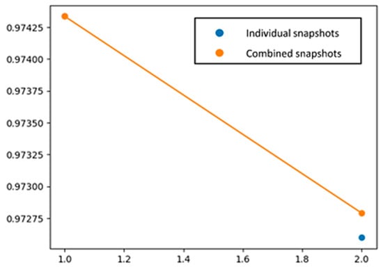 System parameters and specifications utilized in training and testing are specified in Table 3. The first logical step was selecting the appropriate number of images for the proposed model. The two snapshots were employed as a starting point for the network and the output has been examined. Following the cyclic learning rate schedule, the learning rate was raised purposely after every 100 epochs. The snapshots have been saved following every 100 training epochs as portrayed in Figure 11.
