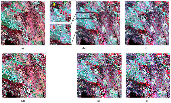 In terms of the visual impact, it is noteworthy that the performance of sub-block B in the STARFM model appears to be the least favorable, as evidenced by Figure 6b. The resultant output from STARFM aligns more closely with the observations made in Figure 6b. This observation points to the limitations of the STARFM model in capturing the desired changes effectively.