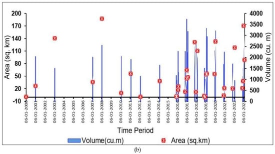 (a) Maximum depth during austral summers of 2000–2023. (b) Area and volume during austral summers of 2000–2023.