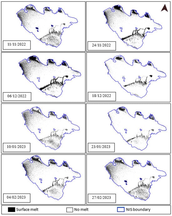 The surface melt extent (SME) map over NIS for the austral summer 2022–2023.
