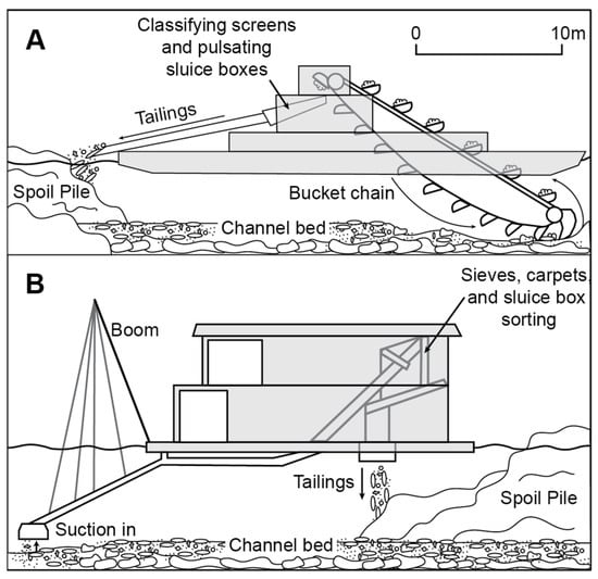 - Kohler, J. 7.4.1: Dredging or Dredge Mining. Available online: https://www.e-education.psu.edu/geog000/node/883 (accessed on 4 April 2023).