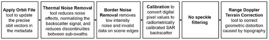 The common SAR pre-processing workflow is carried out for each Sentinel-1 scene.