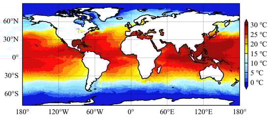 - Reynolds, R.W.; Smith, T.M.; Liu, C.; Chelton, D.B.; Casey, K.S.; Schlax, M.G. Daily high-resolution-blended analyses for sea surface temperature. J. Clim. 2007, 20, 5473–5496. [Google Scholar] [CrossRef]