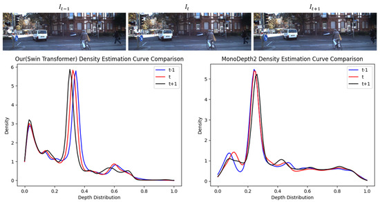 The progression of depth prediction research originated from the hypothesis that humans can ascertain relative distances in a single image through learned experience [1,2]. This premise was adapted into a learning-based challenge for artificial intelligence algorithms, yielding remarkable results in depth prediction. Progress in research in stereo camera data suggests a shift from data-driven supervised learning to self-supervised learning, addressing issues such as the high cost of training data production and the scarcity of depth data from LiDAR sensors [3,4,5,6]. Earlier studies aimed to transcend the constraints of data acquisition and the reliance on stereo cameras by incorporating monocular camera data [7,8,9,10,11]. Nonetheless, this shift introduced several new research challenges: