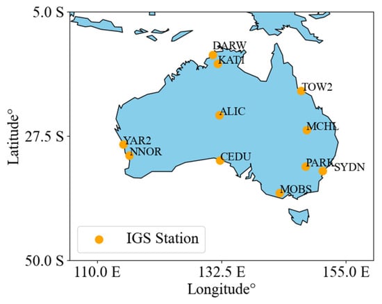 Location of IGS ground tracking stations in this experiment.