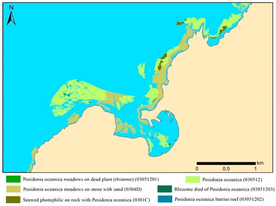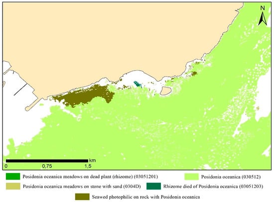 - Julià, M.; del Valle, L.; Bagur, M.; Marsinyach, E.; Pons, G.X.; Carreras, D. Cartografía de los Hábitats Marinos de las Islas Baleares: Compilación de Capas y Comunidades Bentónicas; Observatorio Socioambiental de Menorca (Institut Menorquí d’Estudis): Palma, Spain; Societat d’Història Natural de les Balears: Palma, Spain; Fundació Marilles: Barcelona, Spain, 2019; Volume 157, Available online: https://docs.google.com/file/d/1EhquRA6eD0bKJSeM2jVImuAX1JRHwhus/preview?rm=minimal (accessed on 9 December 2023).