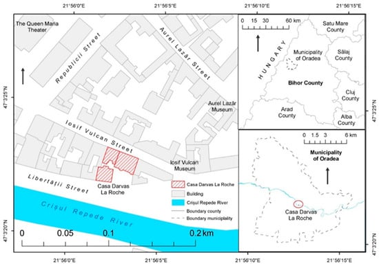 Location of the Darvas-La Roche House at the level of Bihor County and Oradea Municipality.
