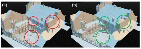 The results of the laser scanning undertaken at Darvas-La Roche House ((a)—main facade of the building; (b)—rear facade and garden).