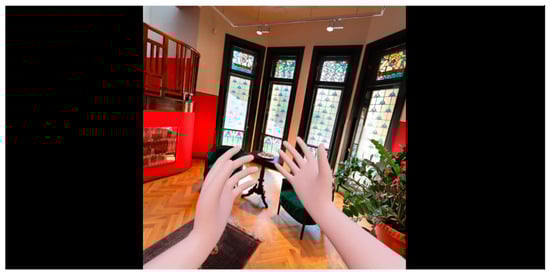 In addition to the nine rooms that are of real value for tourism, for a holistic inclusion of the monument in a virtual tour, their interconnection must also be taken into account, so as to ensure the best transition from one to another []. In this sense, it was also considered to take panoramic images that capture only the connecting elements of the museum’s interior, such as parts of the hallways, access areas, stairs, or intermediate rooms (which are not of particular interest to the visitor). The final goal of these steps was to ensure a more realistic and uninterrupted transition to the museum’s hot spots. Thus, visitors will experience a visit as natural as possible, in which they have to cross corridors and access areas to reach the exhibitions. It was not necessary to implement a virtual tour in which those interested “jump” from one room to another without the visit having a well-planned logic and itinerary.