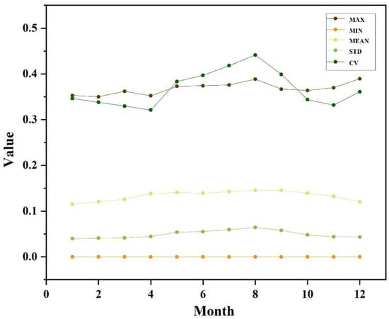 Monthly statistics of SM in the study area.