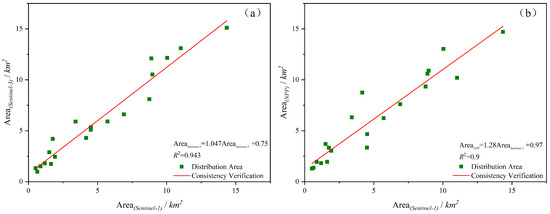 Consistency verification: (a) verification of consistency between Sentinel-3 and Sentinel-1 images; (b) verification of consistency between NPP and Sentinel-1 images.