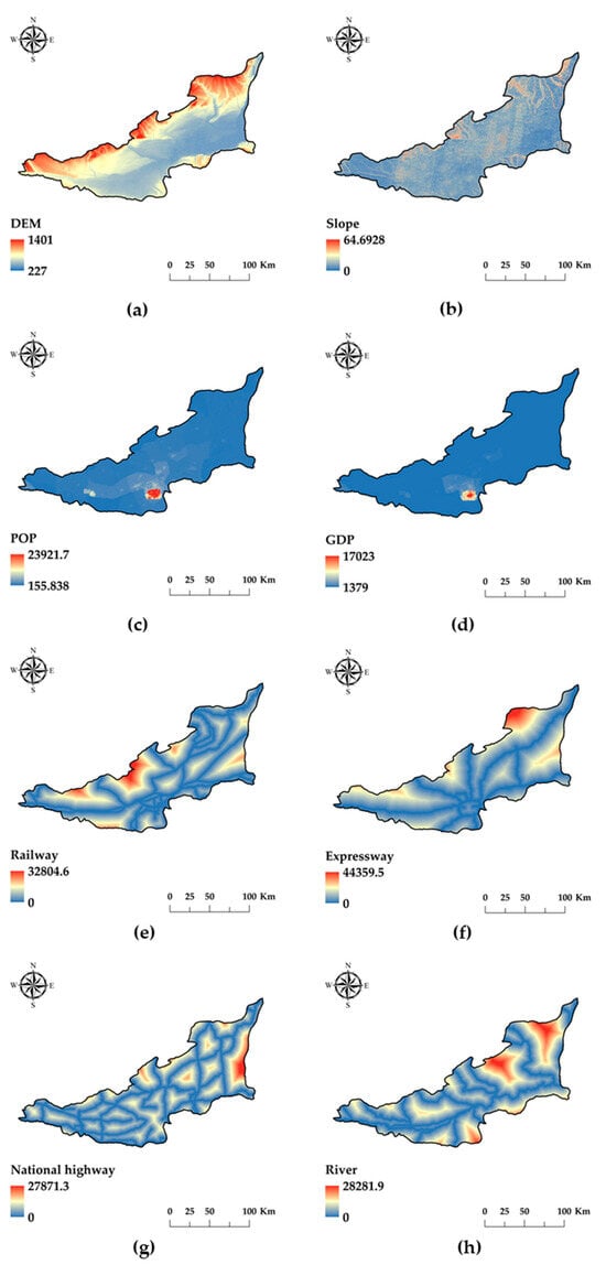 (a–h) Distribution of the drivers in the Guanzhong Plain.