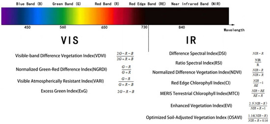 Figure 10 shows some spectral indicators used in this study and the band range required for calculation. These indicators have been widely used in the study of vegetation physiological and biochemical monitoring indicators.