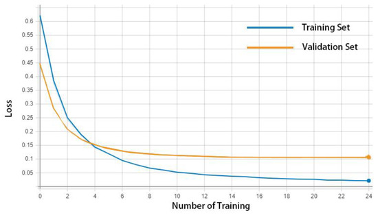 Figure 12 shows the convergence of the loss function on the training set and the verification set. When the epoch reaches 24, the model converges almost completely.