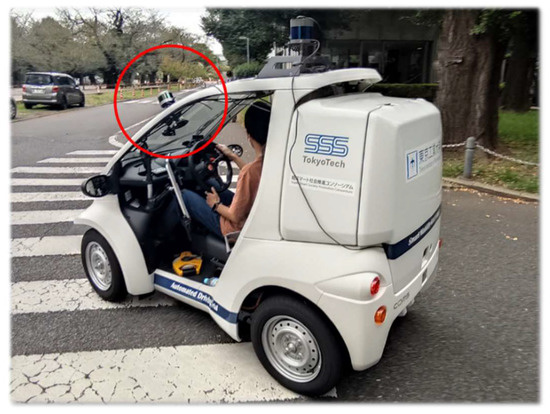 The sparse point cloud used in this experiment was captured using a Velodyne Puck (VLP-16) LiDAR sensor mounted in front of a small vehicle tilted 45 degrees downward from horizontal. As shown in Figure 2, it was temporarily attached to the vehicle’s large windscreen, since there was no available space in front for a permanent installation. This enabled the scanning to obtain more ground surface points.