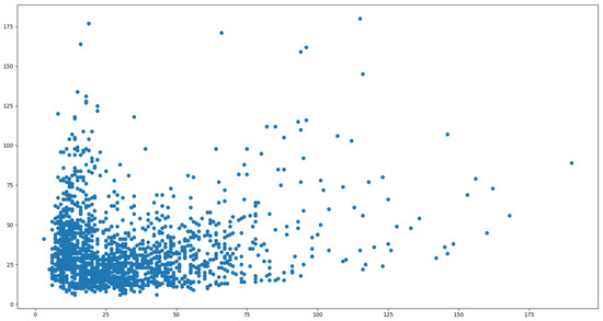 Our experiments are carried out under the framework of PyTorch1.1.0, and network training is carried out on computers using Ubuntu16.04 and Cuda10.2. Due to the limitation of the GPU’s computing capacity, the maximum number of iterations (epoch) is 12 with a batch size of 4. In addition, ResNet50 pre-trained on ImageNet is adopted as the initialization model. The optimizer uses a stochastic gradient descent (SGD) with a learning rate of 0.25, a momentum of 0.9, and a weight decay of 0.0001. The learning rate drops 10 times at the 8th and 10th epochs to make the model converge. The distribution of Height-width ratios in the dataset is shown in Figure 11.