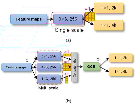 RPN mode. (a) Single square conv. (b) Multi-asymmetric convs.
