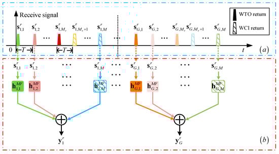 The signal processing procedure at the radar receiver is shown in Figure 3b. denotes the matched filter of . As depicted in Figure 3b, the matched filter output of the -th JRC-CWG returns are coherently accumulated, which can be denoted as
