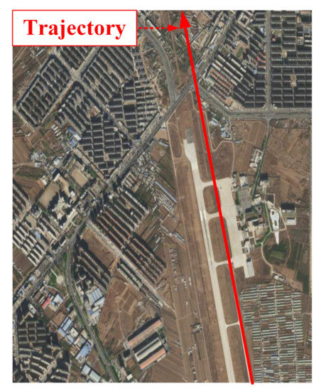 In the real-data experiment, the targets of the left area are aliased with that of the right area, and the imaging results are ambiguous. Based on Figure 8a, beamforming is used to solve the Doppler ambiguity, and the image results are shown in Figure 8b. One can see that the Doppler ambiguity has been resolved in some areas. However, due to the effect of array errors, most areas are still seriously ambiguous, such as the area highlighted by the red matrix. Due to Doppler ambiguity, the airstrip in Figure 16 cannot be distinguished from the ambiguous targets in Figure 8a. After the beamforming-based Doppler ambiguity resolving, due to the array error, the airstrip is still indistinct in Figure 8b. The proposed method is used to realize array error estimation and imaging reconstruction, and the airstrip is clearly distinguished, as shown in Figure 8c. Experimental results verify that the proposed method can be applied to FLMC-SAR system to realize unambiguous forward-looking imaging.